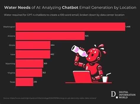 The hidden water footprint adds a new dimension to AI’s environmental impact, especially in regions where water scarcity already threatens ecosystems and public health.